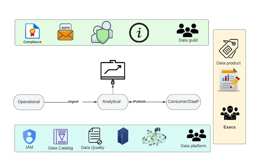 Data as a Product: Domain-oriented data is shared as a product directly with data users, following guidelines that make it shareable and reusable.